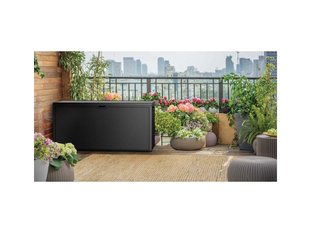 Úložný box Keter EMILY s objemom 277 litrov je všestranným riešením na uskladnenie záhradných doplnkov, podušiek, náradia alebo detských hračiek. Vďaka jednoduchému dizajnu a neutrálnej grafitovej farbe sa hodí do každej záhrady, na terasu či balkón.