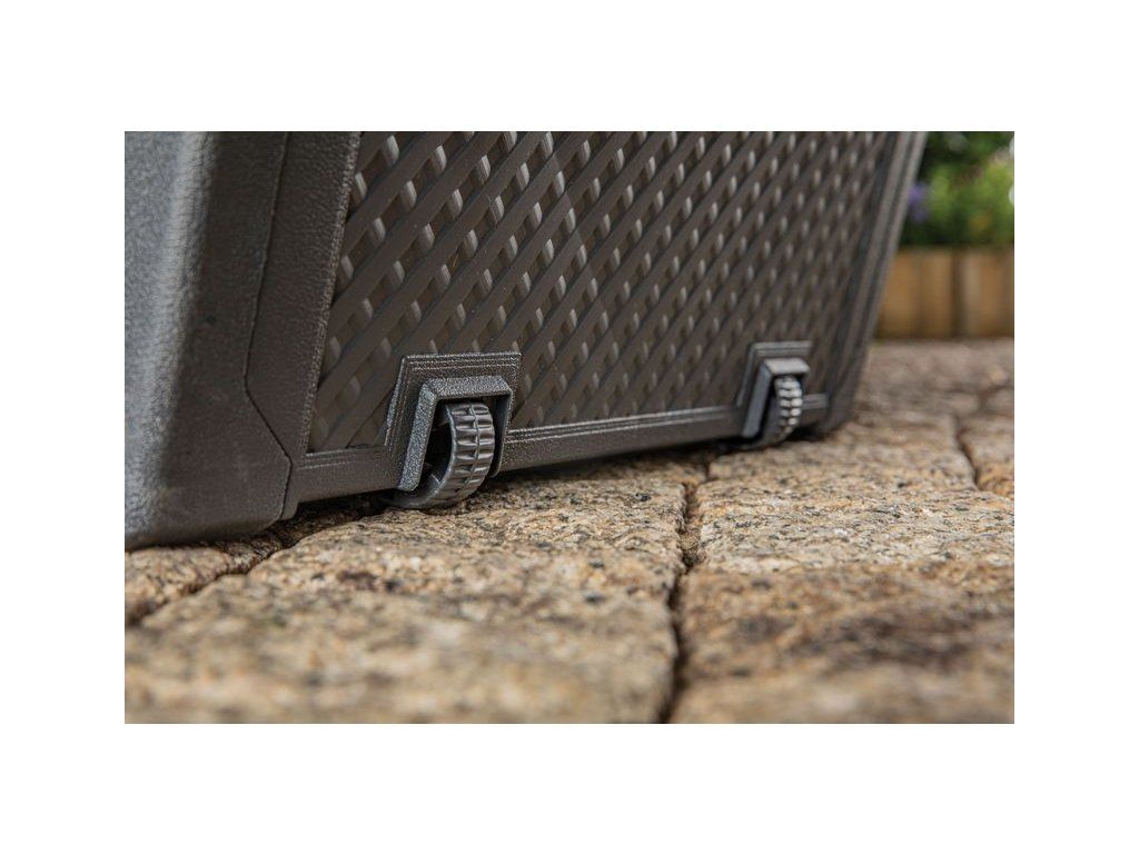 - Nožičky, kolieska a úchyty: zabudované rukoväte a kolieska uľahčujú premiestňovanie boxu aj keď je plný.