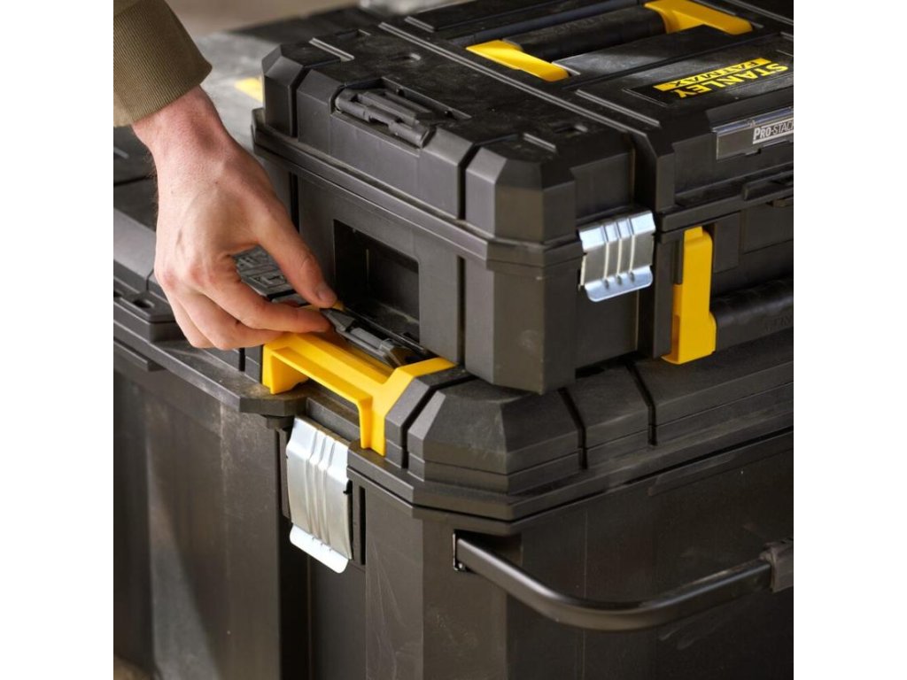 - Súčasť radu STANLEY® FATMAX® PRO-STACK™ - prispôsobiteľný, stohovateľný a prenosný úložný systém.