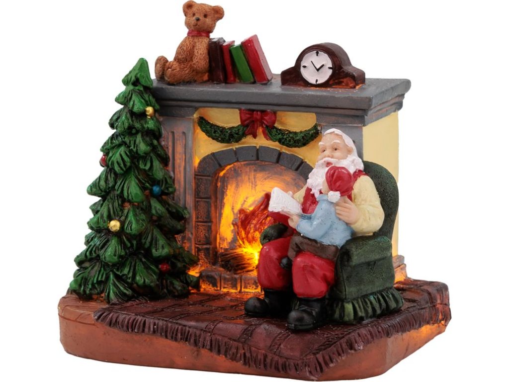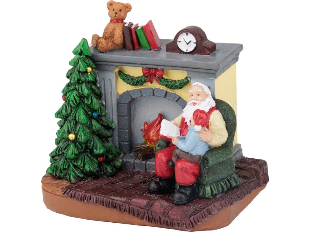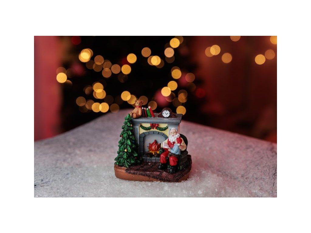 Dekorácia MagicHome Vianoce, Santa s dieťaťom pri krbe, LED, interiér, 10,5x8x9 cm, Sellbox 12 ks