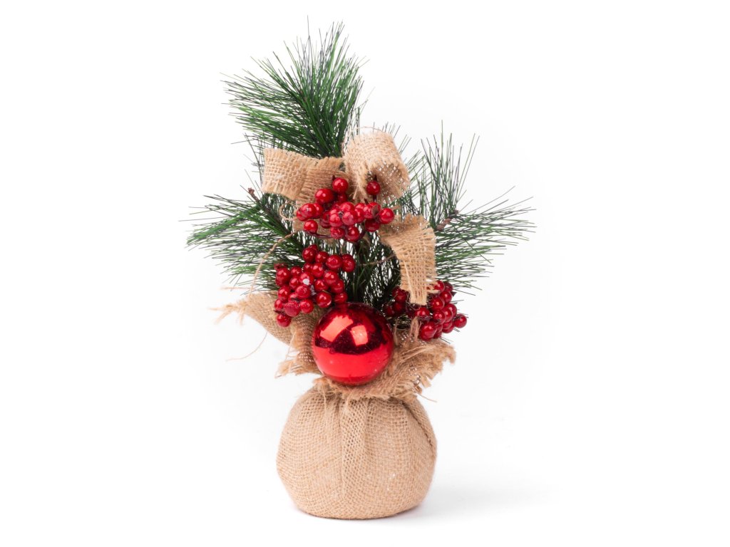 Vianočná dekorácia MagicHome vetvičky v jute s guľou dotvorí čarokrásnu atmosféru Vianoc vo vašom domove. Výška je 23 cm.