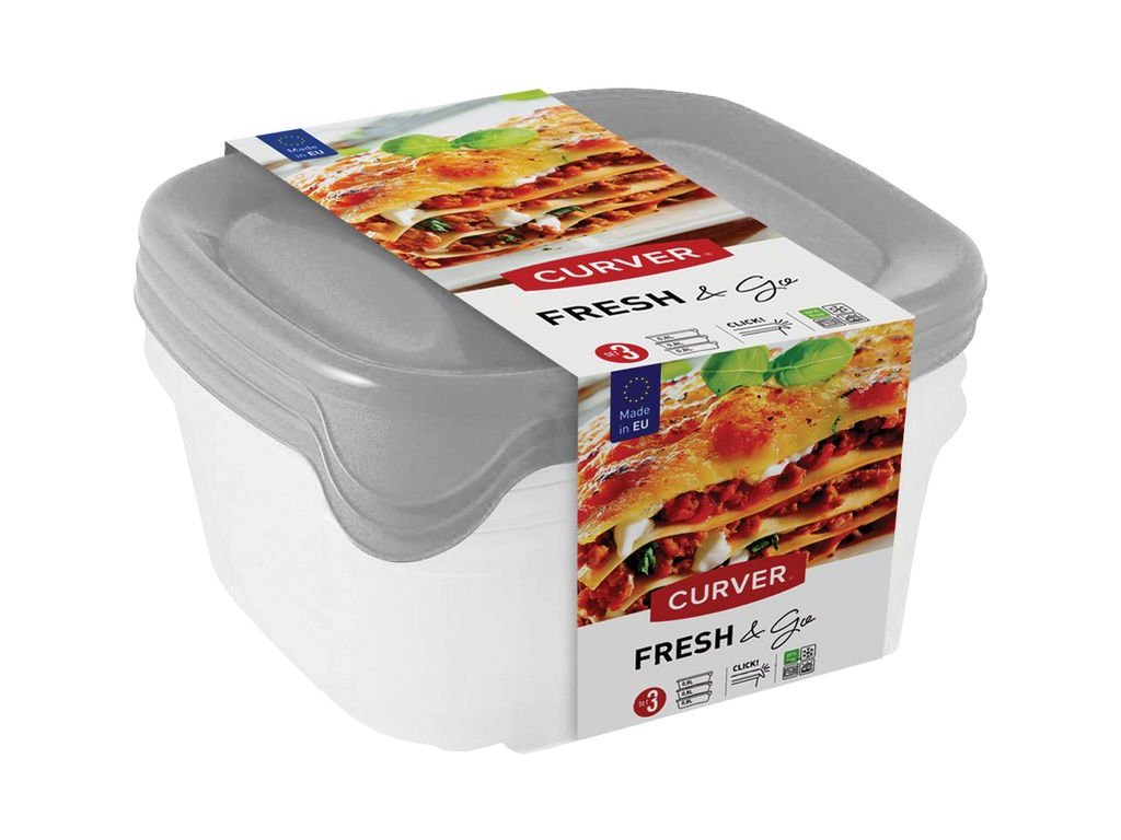 Sada 3 praktických potravinových boxov s objemom 0,8 litrov na uskladnenie potravín, polotovarov a dokonca aj hotových pokrmov. Vďaka odolnému plastu môžete škatuľky ukladať na horúce aj studená miesta.Vhodné do mikrovlnnej rúry, umývačky aj do chladničky. Sú navrhnuté tak, aby nezabrali príliš miesta. Majú špeciálne profilované veka, ktoré uľahčujú otváranie boxov. Výrobky majú certifikát, ktorý povoľuje kontakt s potravinami. Výber farby (mint, sivá alebo broskyňová) nie je možné ovplyvniť.