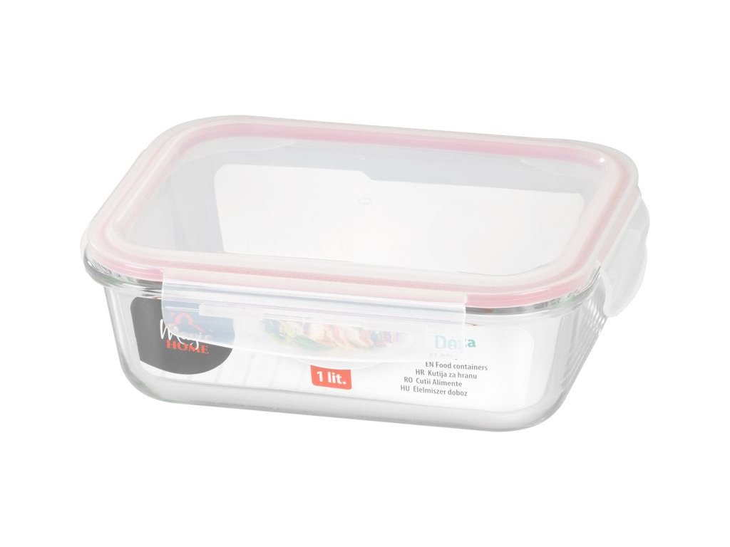 Dóza MagicHome, obdĺžniková, 1000 ml, s vekom, Clip, sklenená