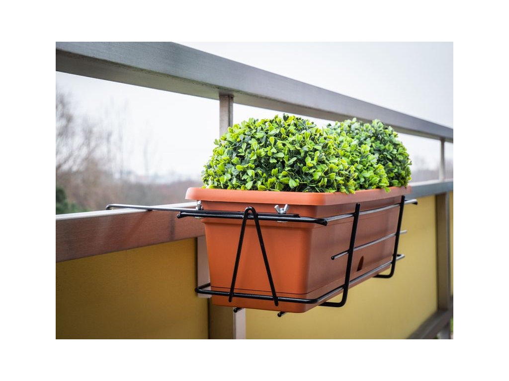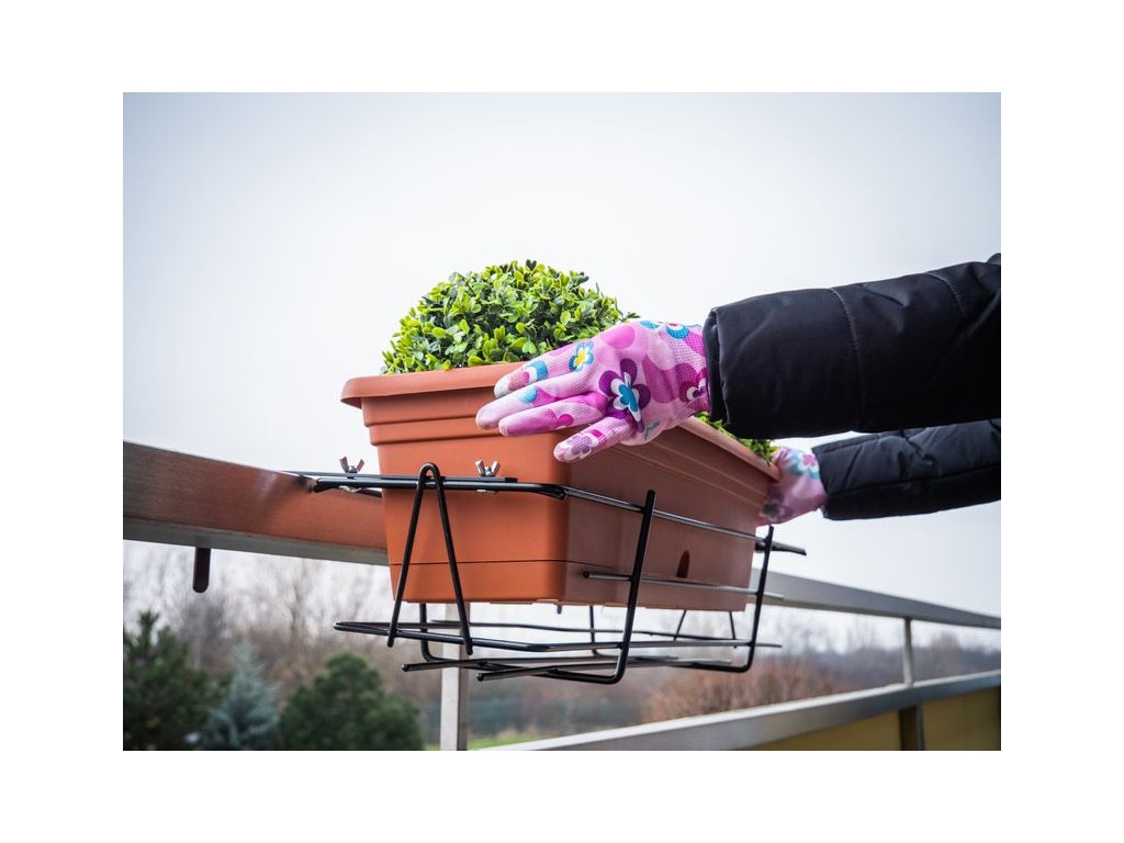 Kovový držiak BUMETA je krásnym doplnkom do záhrady. Háky na zadnej časti slúžia na jednoduché uchopenie na balkón alebo zábradlie.