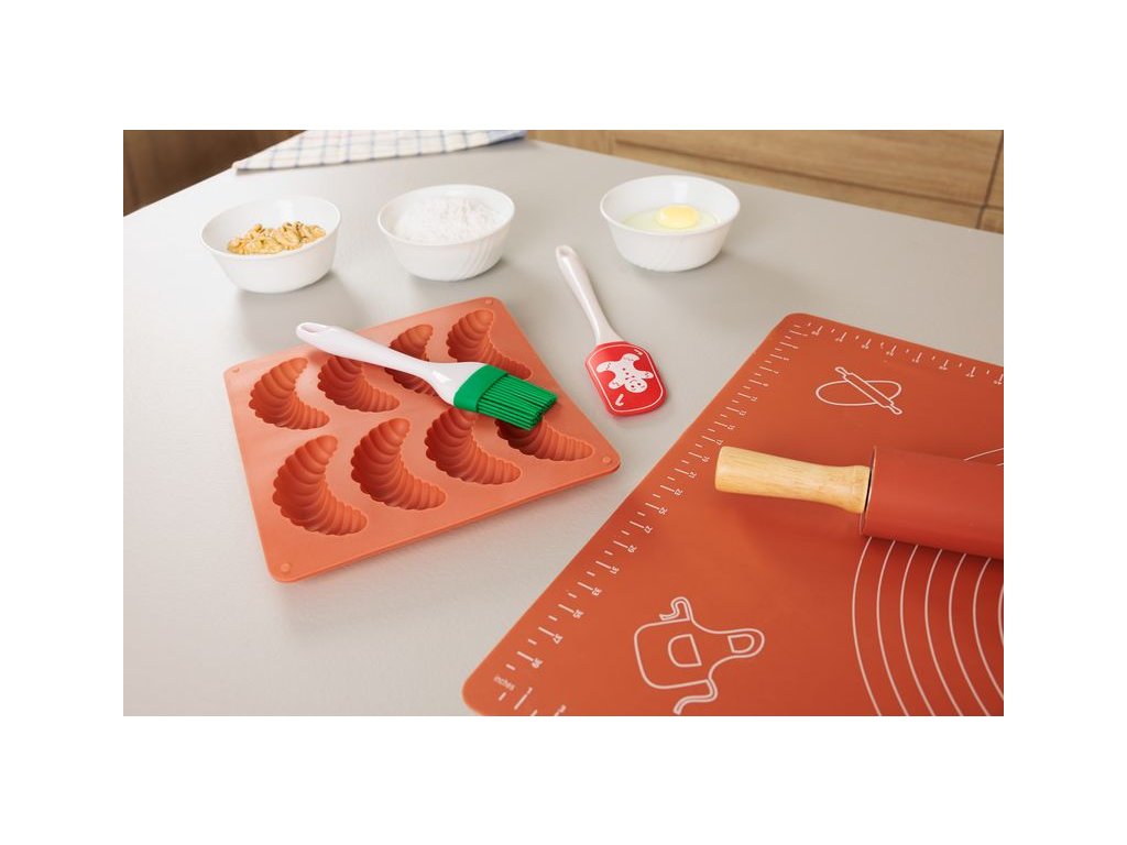 S touto praktickousilikónovou formouna pečenie vanilkových rožtekov môžete pohodlne pripraviť až8 rožtekovnaraz. Forma s rozmermi24,6x22,3 cma výškou2 cmje všestranná a vhodná pre rôzne typy rúr – mikrovlnné, elektrické, teplovzdušné aj plynové.