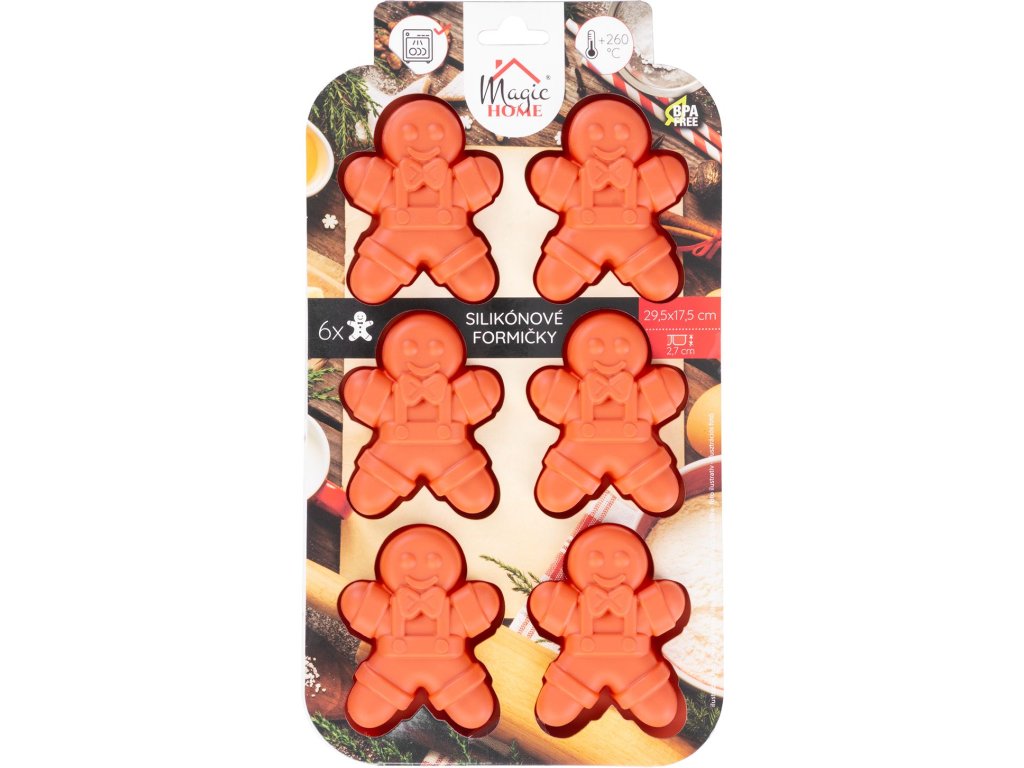 Forma MagicHome, na pečenie, vianoce, silikón, 6 kusov postavičky perníček, 29,5x17,5x2,7 cm