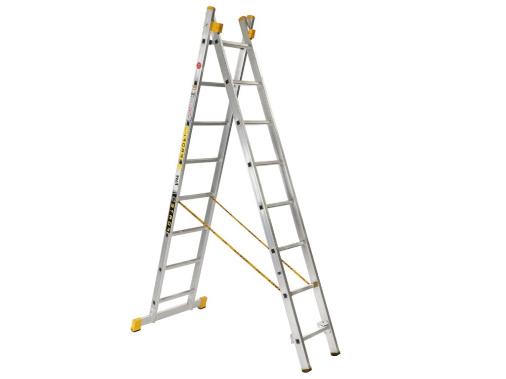 Hliníkový dvojdielny univerzálny rebrík FORTE, počet priečok 2 x 8, max. výsuvná dĺžka 3,83 m a šírka 420 mm. Rebrík možno použiť ako výsuvný rebrík alebo ako štafle. Možnosť použitia na profesionálne účely. Na produkt sa vzťahuje záruka 7 rokov.