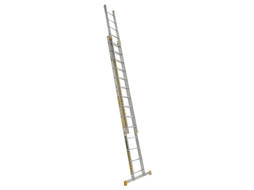 Hliníkový dvojdielny výsuvný rebrík FORTE, počet priečok 2 x 18, max. výsuvná dĺžka 8,39 m a šírka 492 mm. Tento typ rebríka sa nedá zložiť do "A" ako štafle.