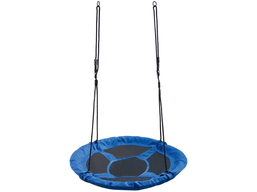 Detská hojdačka ponúka kopec zábavy pre vaše deti. Hojdačka sa od všetkých iných líši svojim zaujímavým, čierno-modrým kruhovým tvarom, na ktorý si môžu deti ľahnúť alebo posadiť sa. Kruhová časť na sedenie je dostatočne pevná na sedenie. Priemer tejto kruhovej časti na sedenie je 100 cm a jej nosnosť je 150 kg. Na protiľahlých stranách sedacieho kruhu sa nachádzajú nastaviteľné 1,4 - 1,9 m dlhé laná, ktoré je potrebné pevne uviazať na miesto, kde bude hojdačka umiestnená.