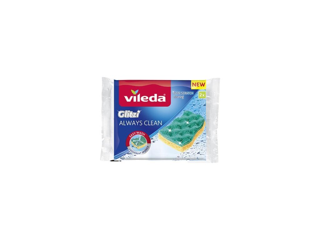 Hubka Vileda Glitzi Always Clean je navrhnutá pre hygienické čistenie bez poškriabania citlivých povrchov alebo riadu - minimálne úsilie pre vynikajúce čistiace výsledky.