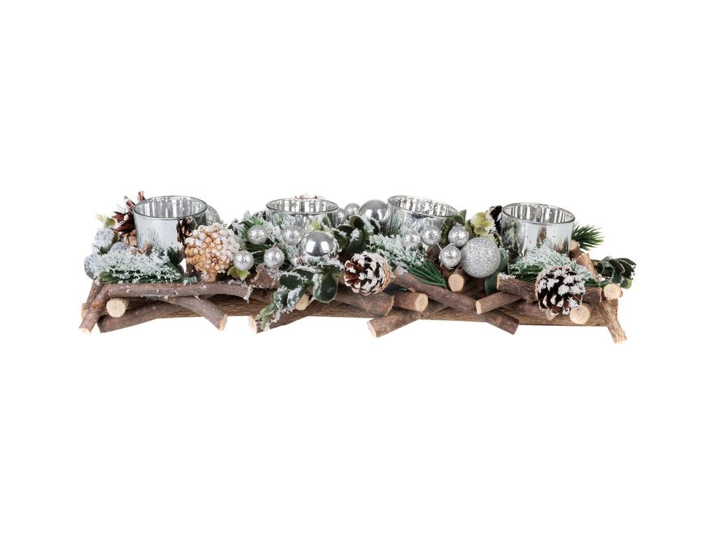 Ikebana MagicHome Vianoce, drevená, strieborná, adventná, 40x14x8 cm