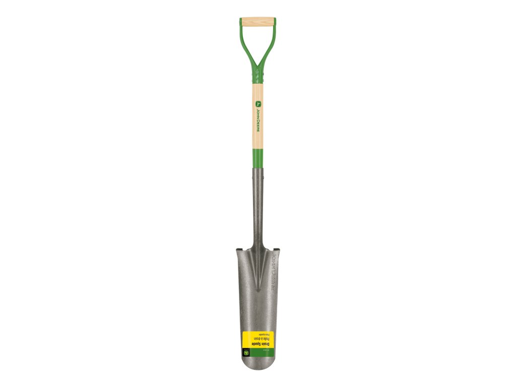 John Deere – Kovaný rýľ štychár PEP-16-RBA-JD: odolný rýľ s úzkou oceľovou čepeľou a drevenou rukoväťou s D-úchopom, ideálny na výkop úzkych rýh a presné práce v pôde.