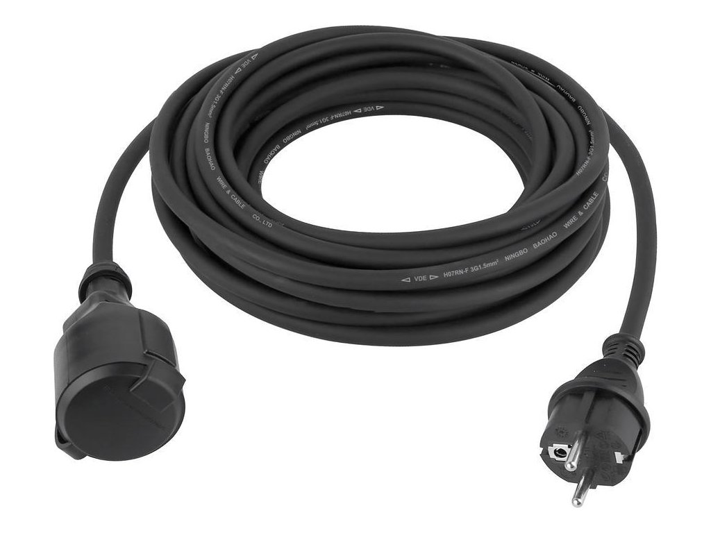 Predlžovací kábel BH-FSF v čiernej farbe zabezpečí prívod elektrickej energie až do dĺžky 10 metrov. Vhodný do exteriéru vďaka triede ochrany IP44. Kábel je vybavený zásuvkou s krytom.