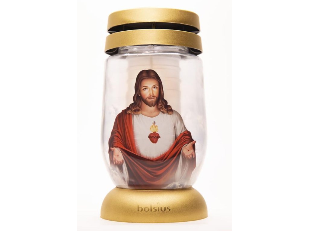Kahanec s obrazom Márie s Ježišom so zlatými akcentmi. Vyrobené z kvalitného priehľadného skla, cez ktoré je krásne vidieť plameň. Vďaka veľkej základni je veľmi stabilný a vďaka špeciálnej štruktúre a "čiapke" je vložka vo vnútri dokonale chránená proti vetru a vode. Elegantný a moderný, vyzerá skvele ako hlavná dekorácia náhrobných kameňov. Doba horenia: 36 hodín.