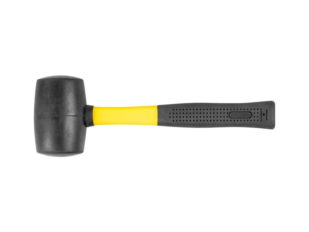 Gumené kladivo Strend Pro s priemerom 34 cm a kovovou rúčkou vhodné na univerzálne použitie. Kladivo je ideálne na pribíjanie alebo upravenie citlivých materiálov bez toho, aby sa poškodili..Zatĺkacia hlava čiernej farby je vyrobená z gumy.