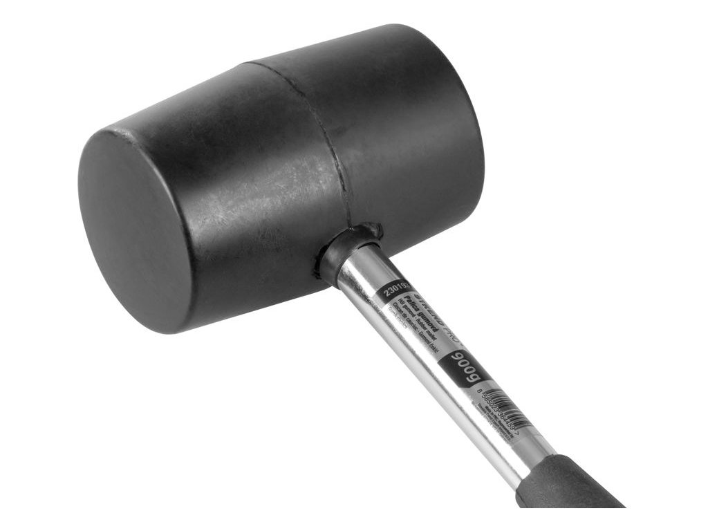 Gumené kladivo Strend Pro s kovovou rúčkou vhodné na univerzálne použitie. Kladivo je ideálne na pribíjanie alebo upravenie citlivých materiálov bez toho, aby sa poškodili..Zatĺkacia hlava čiernej farby je vyrobená z gumy