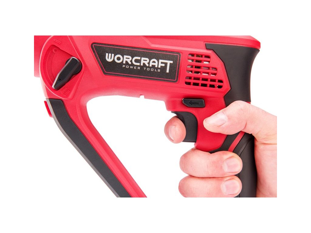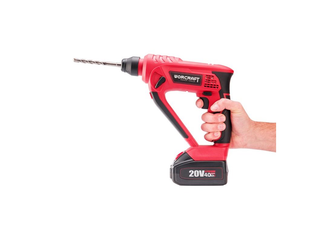 Vŕtacie kladivo Worcraft CRH-S20LiE s upínaním SDS+ je určené na príklepové vŕtanie do betónu, tehál, kameňa, dreva, plastu, kovu a rovnako aj na skrutkovanie (použité špeciálne príslušenstvo). Má ergonomický dizajn a robustnú konštrukciu, čo zaisťuje komfortné a efektívne používanie.