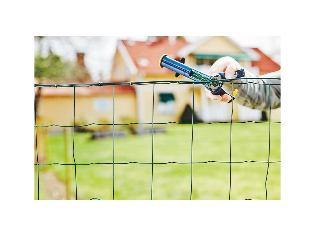 Viazacie kliešte k napínaciemu drôtu, pripevnenie textílií k drôtom, spájanie drôtov. pripevnovanie plotových výplní k nosnému drôtu, sponkovanie laniek, sponkovanie drôtov.