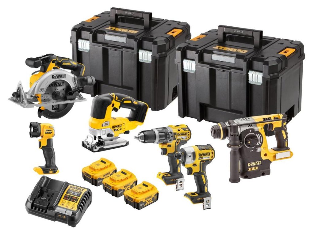 KOMBO SADA 18V 3x5,0Ah (DCH273+DCD796+DCF887+DCS565+DCS334+DCL040) 2xTstak VI