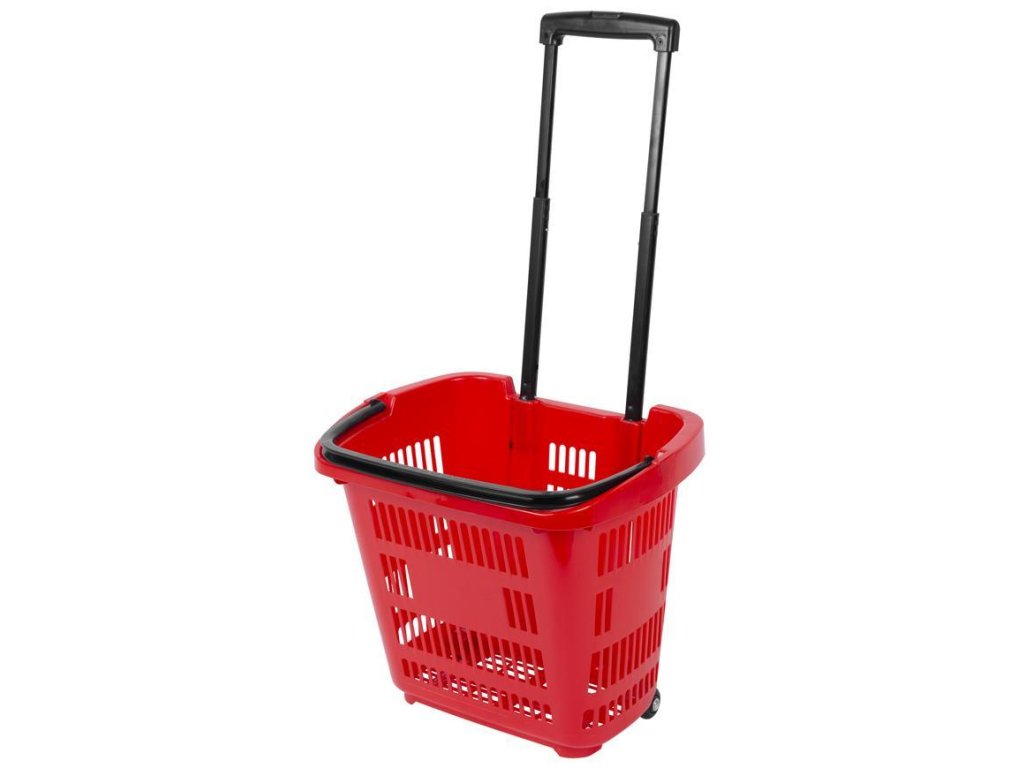 S týmto červeným nákupným košíkom na kolieskach toho nakúpite vdaka jeho veľkému priestoru skutočne veľa. S výsuvnou teleskopickou rúčkou sa nemusíte zohýnať.
