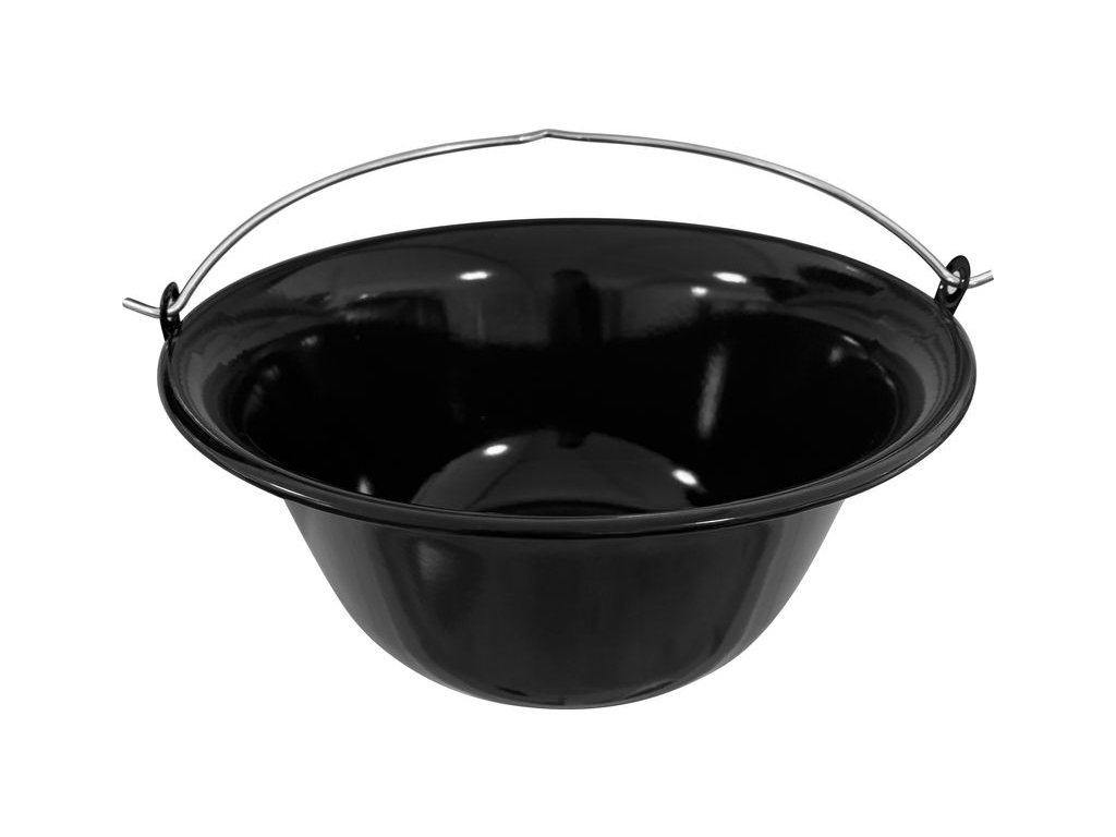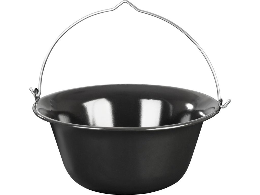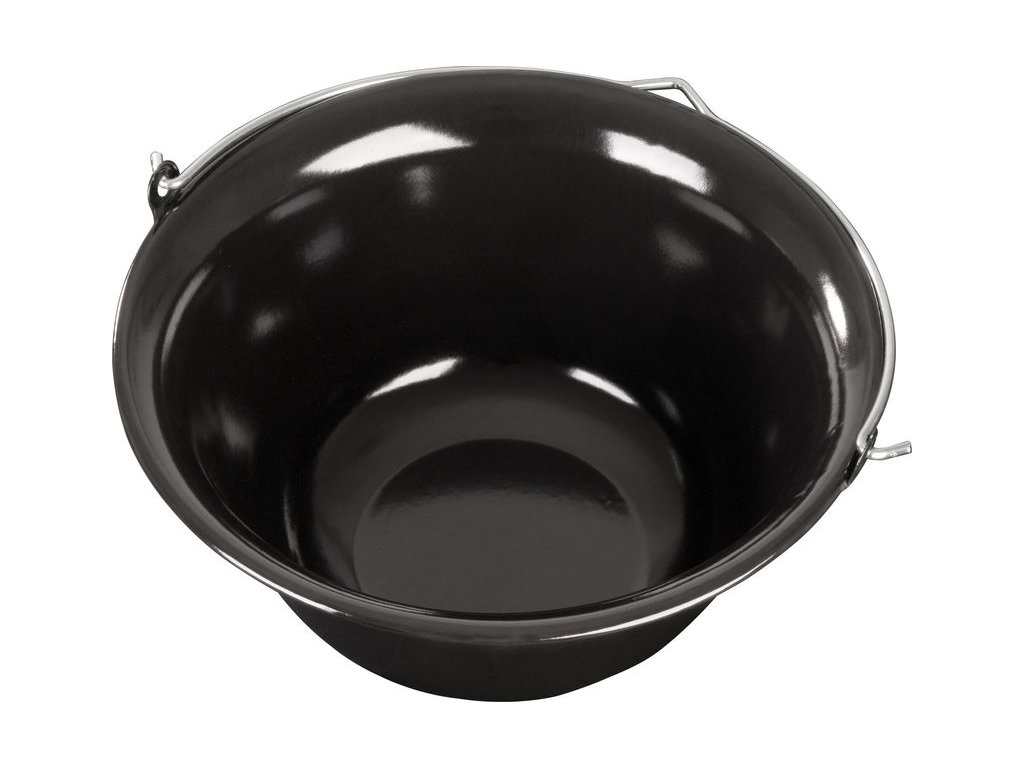 Kotlík je vyrobený z kvalitného oceľového plechu sosmaltovanou povrchovou úpravou, ktorá je odolná voči vysokým teplotám, korózii aj opotrebeniu. Vďakaširokému hornému okrajua pevnému závesnému uchu sa hodí na zavesenie nad otvorený oheň, napr. na trojnožku alebo rošt.