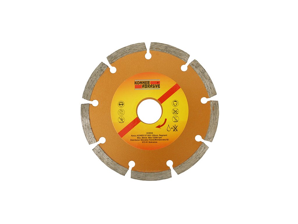 Diamantový kotúč KONNER je vhodný pre domácich kutilov, ale aj pre profesionálnych remeselníkov. Vhodný je na mokré aj suché rezanie. Má široké použitie - tehly, murivo, kameň, betón, žula a mramor. Jeho priemer je 150 mm a maximálne povolené otáčky sú 10 000 rpm.