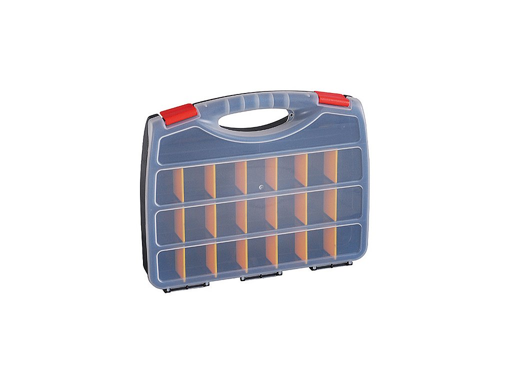 Kufríkový organizér by nemal chýbať vo výbave vašej dielne. Zabezpečuje praktické a prehľadné uskladnenie skrutiek, matíc, podložiek a podobného materiálu vďaka 21 priečkam. Je vyrobený z PVC a maximálna nosnosť je 12,5 kg. Jeho rozmery sú 38x31,5x6 cm.