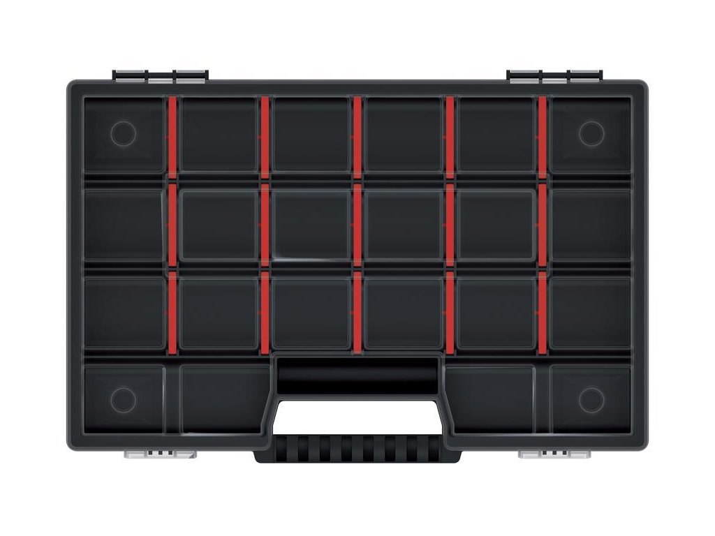 - organizér je vybavený dvoma zámkami, ergonomickým držadlom a priehladným vekom, takže jeho obsah je vždy dobre viditelný