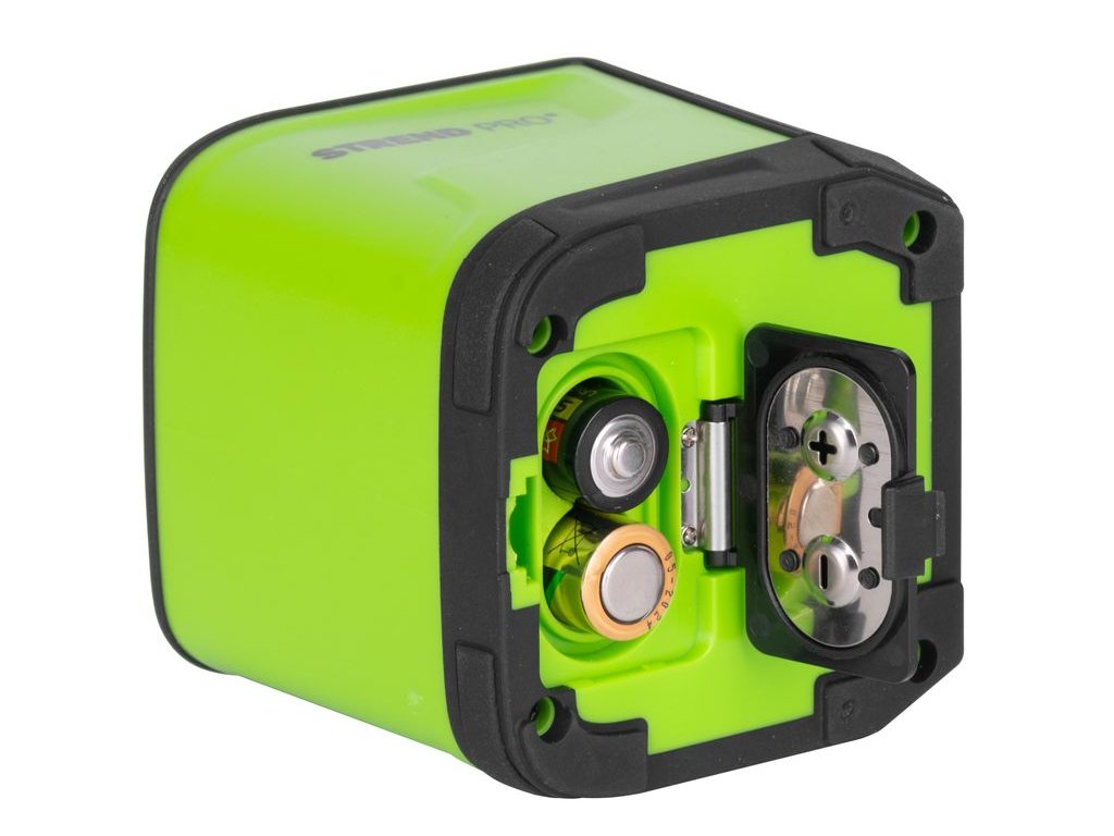 Krížový laser Strend Pro TPLL01D so zelenou laserovou diódou nemeckej značky OSRAM a s magnetickým držiakom v balení.