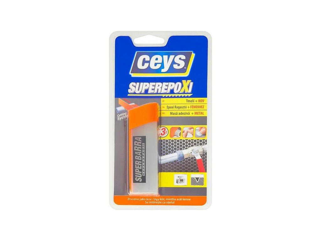 Dvojzložkový epoxidový tmel na kov Super Epoxi je ľahko tvarovateľný, určený pre spájanie, utesňovanie, výplne a obnovu všetkých typov kovov. Pracuje sa s ním ako s plastelínou. Získa rovnakú konzistenciu ako oceľ. Po stvrdnutí ho môžeme brúsiť, vŕtať, leštiť, natierať. Stvrdne v priebehu 3 minút aj pod vodou. Nezosychá sa ani nepraská. Balenie obsahuje aj praktickú špachtľu, ktorá reže tmel a uhladzuje.