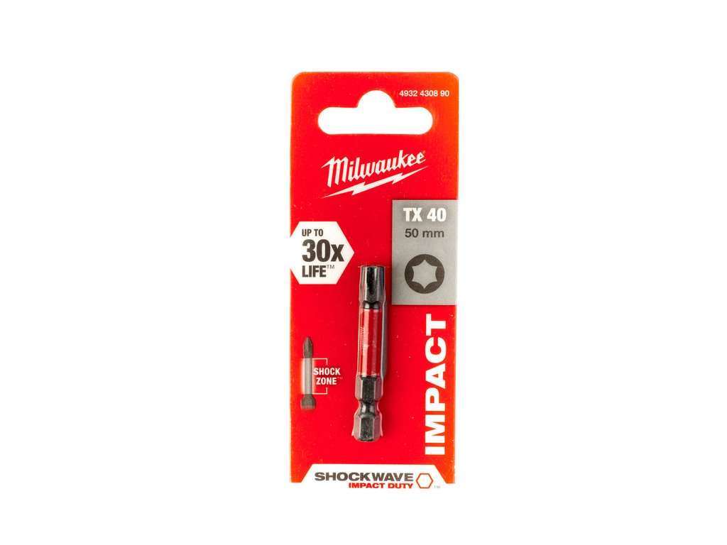 - Špeciálne navrhnutá oceľ – Oceľ Milwaukee® so špeciálnym zložením zaisťuje, že bity Shockwave sú odolnejšie voči rázom pri skrutkovaní.