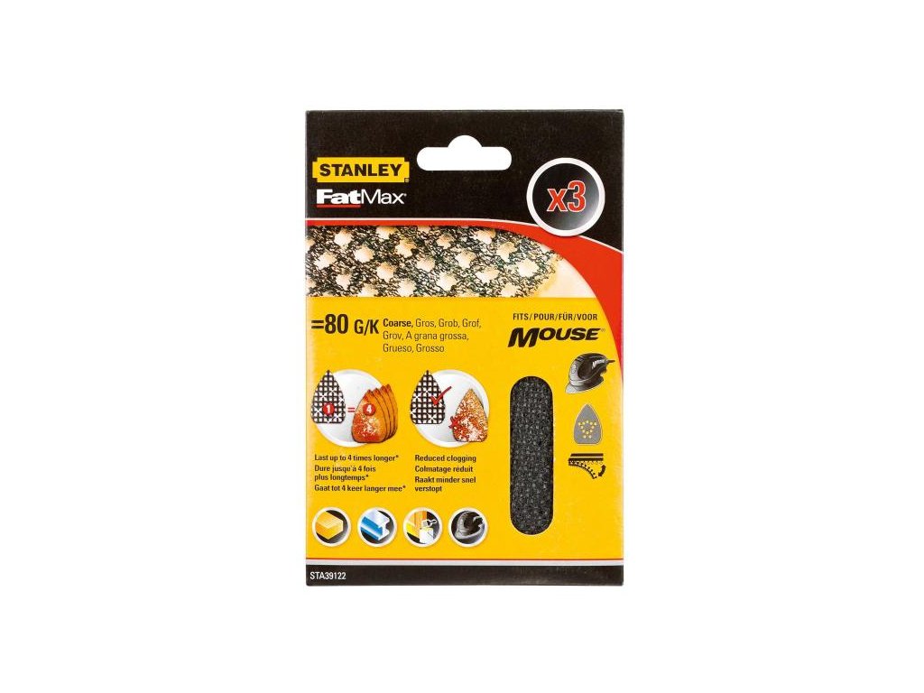 Mriežka brúsna Mouse (žehličkový tvar) P80, suchý zips, 3ks