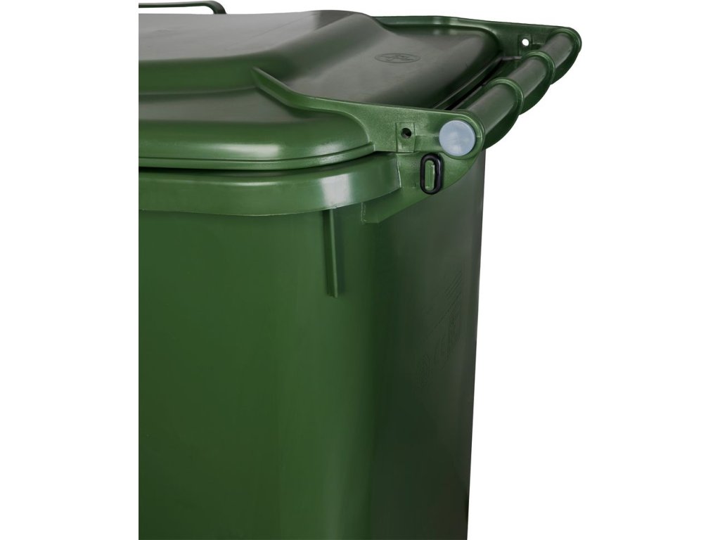 Nádoba na odpad ICS GB4 s objemom 240 litrov v zelenej farbe je robustná a praktická popolnica určená na zber a skladovanie komunálneho odpadu. Vyrobená z odolného plastu, ktorý je rezistentný voči poveternostným vplyvom, UV žiareniu a mechanickému poškodeniu, čo zabezpečuje jej dlhú životnosť.