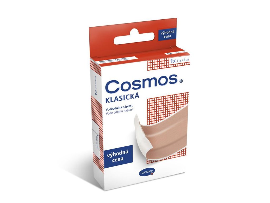 Náplasť Cosmos klasická je spoľahlivá nedelená textilná náplasť určená na prekrytie drobných poranení, rezov či odrenín. Je vyrobená z odolnej tkaniny, ktorá poskytuje pevnú ochranu a zároveň umožňuje pokožke voľne dýchať. Vďaka vodeodolnej úprave zostáva účinná aj pri kontakte s vlhkosťou.