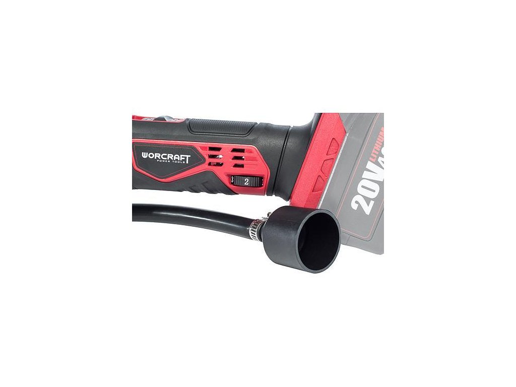 Multifunkčná brúska Worcraft CMT-S20Li s oscilačným uhlom 3,2° je určené na pílenie a rezanie drevených materiálov, plastov, sadrových dosiek, neželezných kovov a spojovacích prvkov (napr. netvrdených klincov, sponiek). Je vhodné na vyrezávanie do sadrokartónu a škrabanie malých povrchov. Brúska je určená najmä na prácu blízko kútov, kde je ťažký dosah a pre prirezávanie pri povrchu. Táto multifunkčná brúska je vybavená praktickým LED osvetlením. Pracovné osvetlenie sa automaticky zapne, keď sa brúska pripojí k zdroju elektrického prúdu. Keď sa zástrčka odpojí z elektrického zdroja, svetlo sa vypne. Otáčky brúsky sa dajú upravovať tak, aby náradie pracovalo v otáčkach od 8 000 otáčok/ min do 18 000 otáčok/min. a to otáčaním regulátora otáčok. Otáčky zvýšite otáčaním regulátora doprava a znížite otáčaním regulátora doľava.
