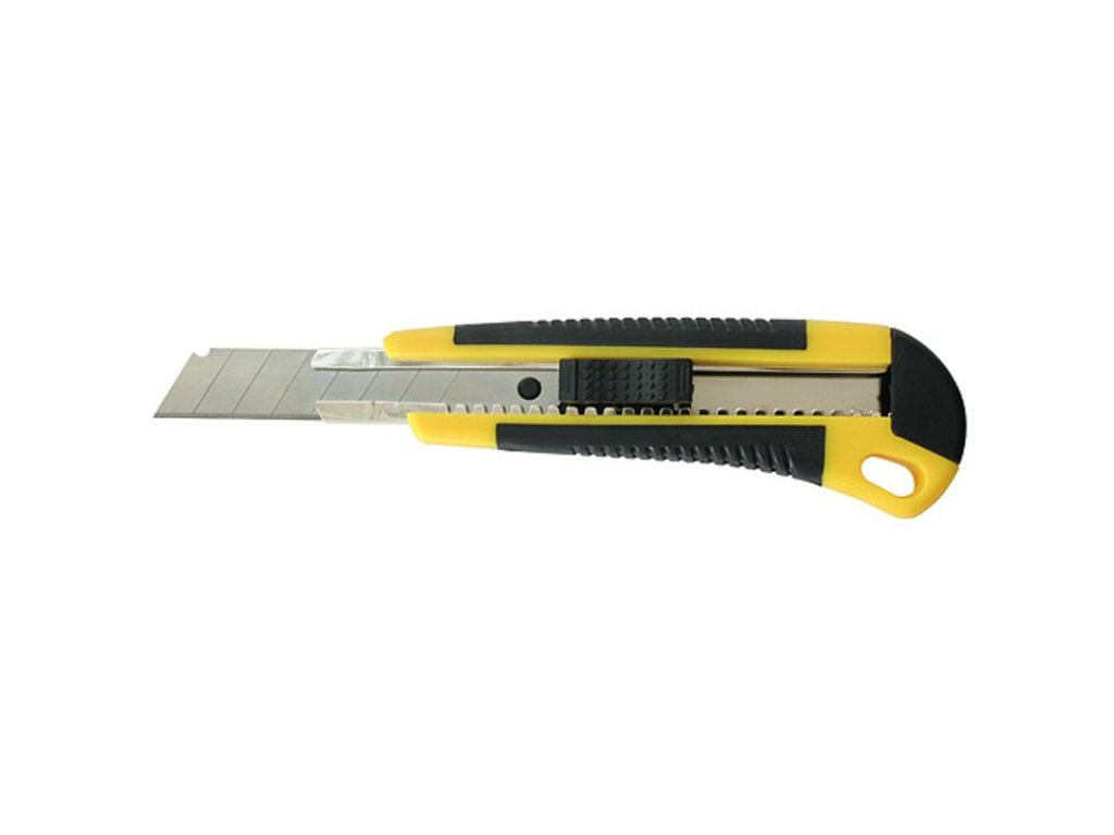 Odlamovací nôž Strend Pro by nemal chýbať vo vašej dielni. Disponuje kovovou vodiacou lištou, vysuvnou čepeľou, bezpečnostnou aretáciou, ergonomickou rukoväťou a plastovým krytom. Zaručuje skvelý výsledok a bezpečnú prácu. Šírka čepeľe je 18 mm.
