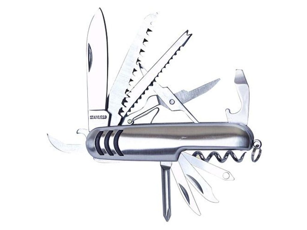 Multifunkčný nôž 15 v 1 poskytuje vykonanie 15 možných úkonov pomocou jediného praktického vreckového nožíka. Povrch noža, ako aj samotných nástrojov, je vyrobený z kvalitného materiálu, ktorý zabezpečuje dlhú životnosť. Nôž je možné použiť ako otvárač na konzervy, otvárač fliaš, vývrtky, nôž, pílku, plochý skrutkovač, nožnice, krížový skrutkovač, pilník, čistič nechtov, krúžok na kľúče, škrabku na rybie šupiny, čistič rybárskych háčikov, rydlo alebo navliekač nití.