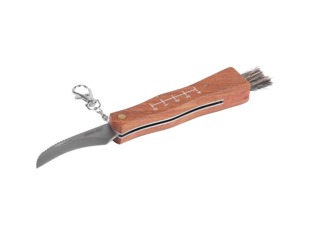 Malý vreckový nožík je praktickým doplnkom pre každého hubára. Nôž pozostáva zo zakrivenej nerezovej čepele. Rukoväť je tvarovaná pre lepšie uchopenie a na jej povrchu nájdete mierku v cm. Na konci nožíka sa tiež nachádza kefka z prírodných štetín, ktorou huby jednoduchšie očistíte.