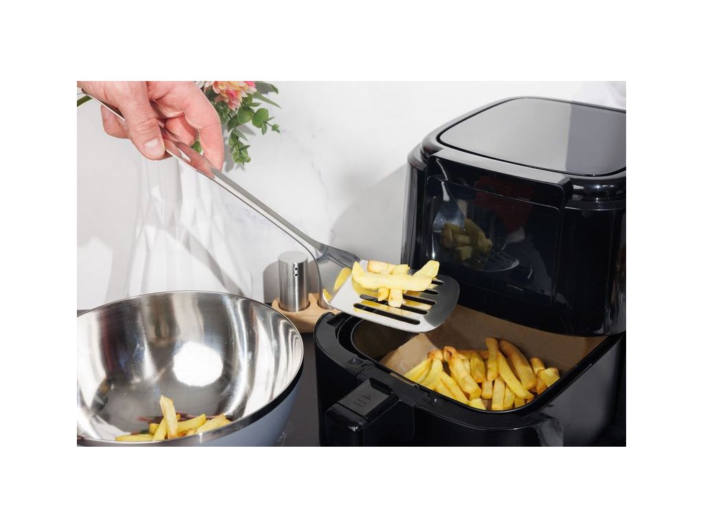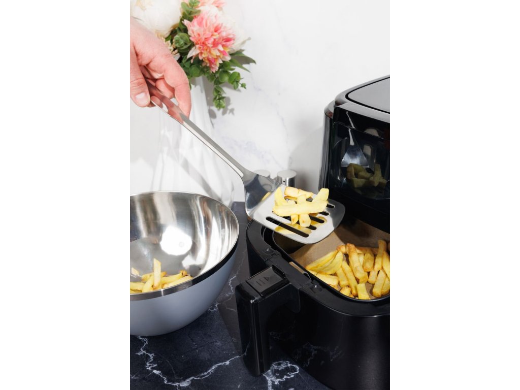Obracačka MagicHome vhodná na každodenné použitie v kuchyni. Je vyrobená z kvalitnej nehrdzavejúcej ocele. Disponuje dierou na zavesenie. Rozmery: 34,4x7,7x3,4 cm.