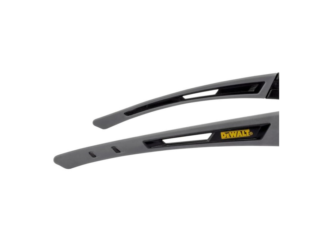 Ochranné okuliare DEWALT DPG100 Crosscut poskytujú vysoký komfort nosenia a spoľahlivú ochranu zraku. Vďaka širokým obopínajúcim šošovkám ponúkajú výborný výhľad a účinnú bočnú ochranu bez obmedzenia zorného poľa. Pogumované, protišmykové stranice a mäkký gumový nosník zabezpečujú stabilné a pohodlné usadenie aj pri dlhodobom používaní. Šošovky z nárazuvzdorného polykarbonátu sú vybavené tvrdou povrchovou úpravou a poskytujú ochranu pred UV žiarením.