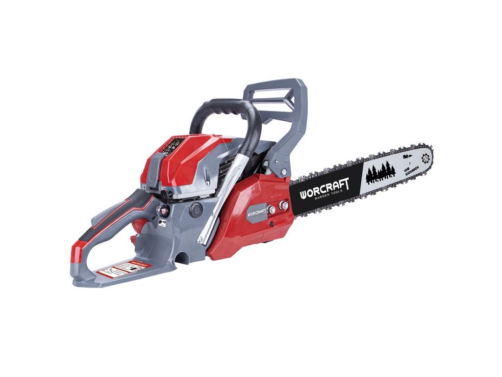 Benzínová píla Worcraft GCS52-20D je určená k rezaniu a píleniu dreva pri rôznych príležitostiach. Či už potrebujete spíliť strom alebo staviate dom, táto motorová píla Vám vždy dobre poslúži. Disponuje dvojtaktným motorom s výkonom 2,2 kW a objemom 49,3 cm3. Je vybavená lištou dlhou 50 cm. Píla dosahuje pri zaťažení maximálne otáčky 11 500 min-1. Na voľnobehu sa pohybujú otáčky okolo 3 000±200 min-1. Palivo potrebné pre správne fungovanie píly sa mieša v určitom pomere z oleja pre dvojtaktné motory a z benzínu s min. oktánovým číslom 95. Do palivovej nádrže sa zmestí 550 ml takejto zmesi. Olejová nádrž pojme 260 ml oleja. S mazaním reťaze sa nemusíte trápiť, keďže v zariadení je zakomponovaný automatický systém mazania reťaze. Navyše palivová a olejová nádrž sú navrhnuté tak, aby bolo palivo spotrebované pred spotrebovaním oleja.