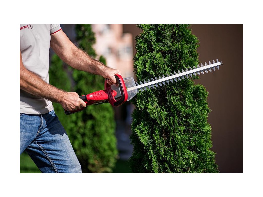 Akumulátorové nožnice Worcraft CHT-S20LiA sú určené výlučne na strihanie živých plotov, kríkov a krovín. Nožnice s lištou dlhou 51 cm disponujú dĺžkou zuba 20 mm. Preto je pred použitím akumulátorových nožníc potrebné odstrihnúť všetky vetvy s priemerom väčším než 20 mm nožnicami na konáre! Výkonné nožnice pracujú rýchlosťou 1200 otáčok za minútu. Nožnice sú vybavené protišmykovou rúčkou, ktorá zaisťuje pevné a pohodlné uchopenie. Bezpečnostná čepeľ má zaoblené boky pre zníženie nebezpečenstva poranenia. Dodatočná ochrana proti nárazom zabráni nepríjemnému spätnému rázu, keď sa čepeľ dostane do styku s múrom alebo plotom. Nožnice sa nabijú za 1 - 1,5 hodiny. Akumulátor a nabíjačka nie sú súčasťou balenia!
