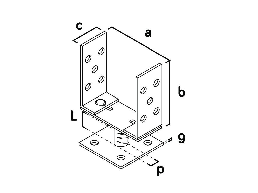 Podpera na hranoly ASU1, 0-125 mm, Zn, pätka nastaviteľná, podstavec
