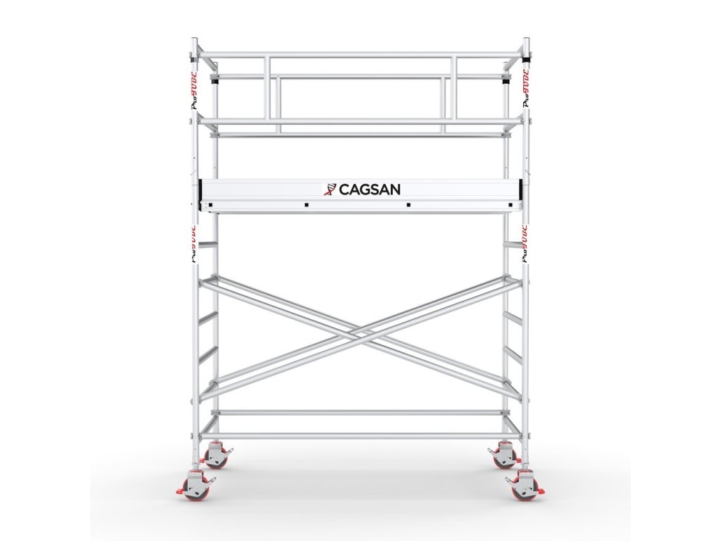 Profesionálne hliníkové lešenie zložené z viacerých modulov, ktoré umožňujú jeho nastavenie do pracovnej výšky max 4,3 m.