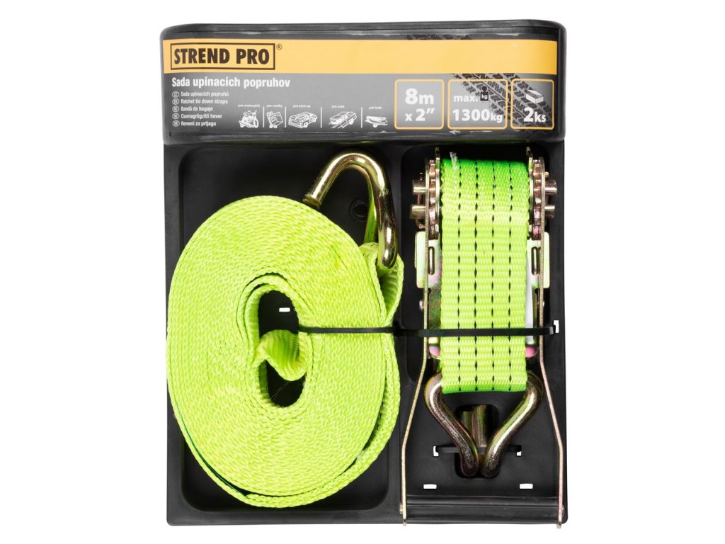 Upínací popruh Strend Pro má široké spektrum využitia. Slúži na zviazanie tovaru, zavetrovanie konštrukcii, na kotvenie stanov, koncertných stage-ov a podobne. Jeho dĺžka je 8 m a maximálna nosnosť je 2600 kg.