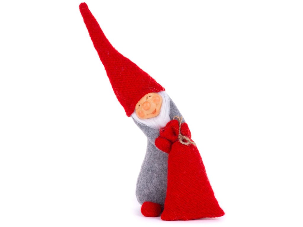 Postavička MagicHome Vianoce, Škriatok s vrecom, červený, látkový, 13x10x43 cm