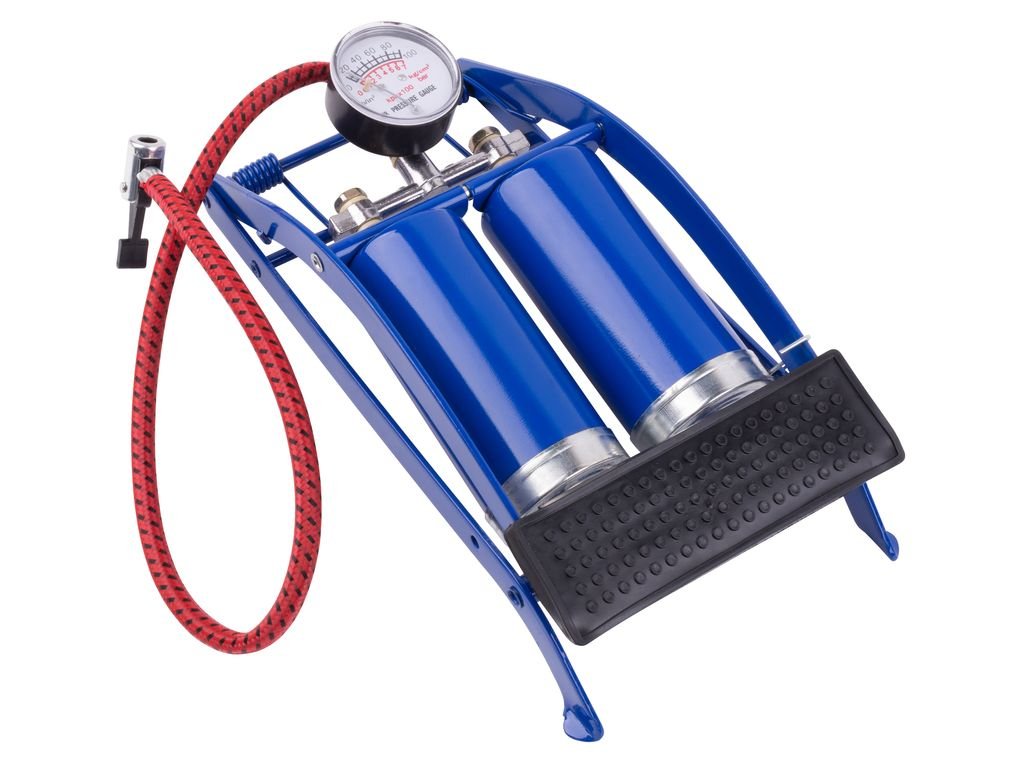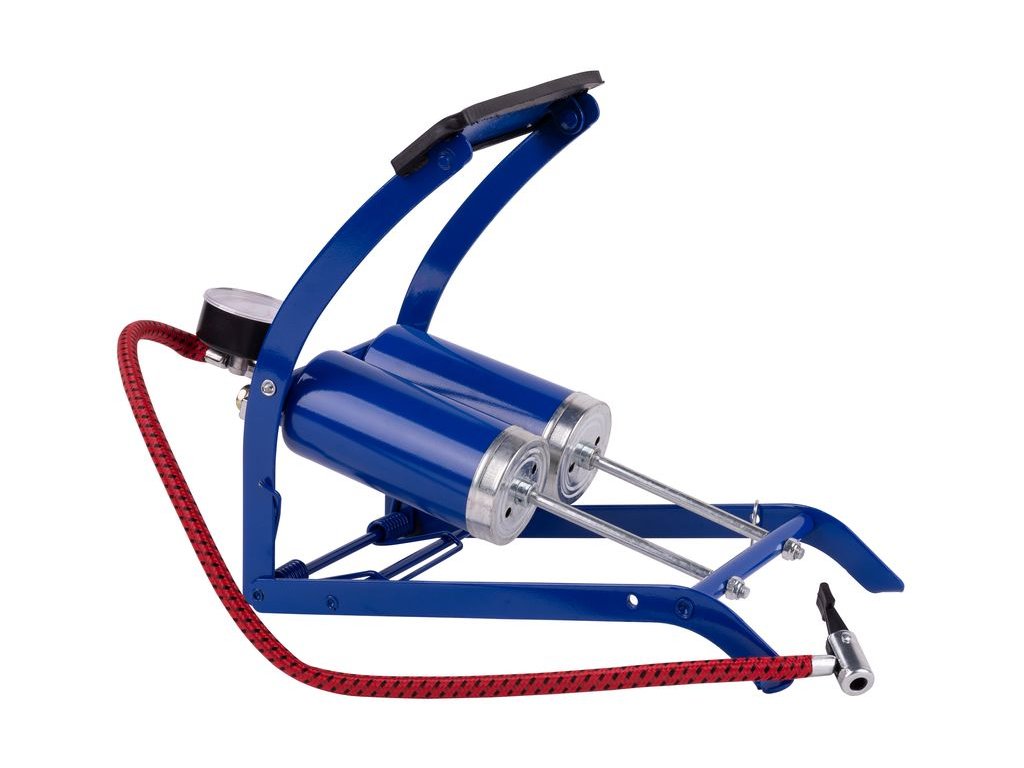 Súčasťou pumpy sú adaptéry na lopty,bicykle,kanoe,matrace,rukávníky.Manometer má odchýlku +-1 PSI.Maximálny tlak dosahuje 7 bar.S veľkým protišmykovým pedálom.
