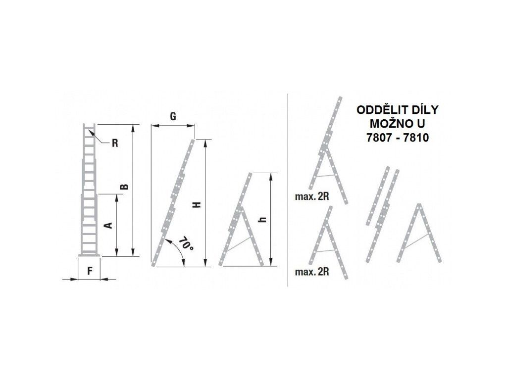 Rebrík trojdielny univerzálny s úpravou na schody 7811 PROFI
