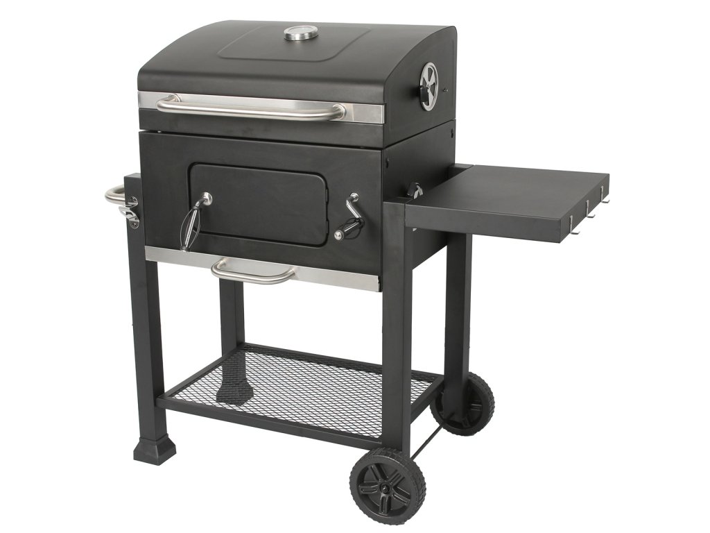 prostorný gril na dřevo nebo dřevěné uhlí s tradičním designem vhodný jak pro menší oslavy, tak i středně velké grilovací párty