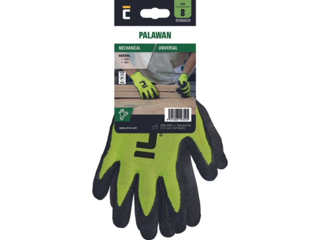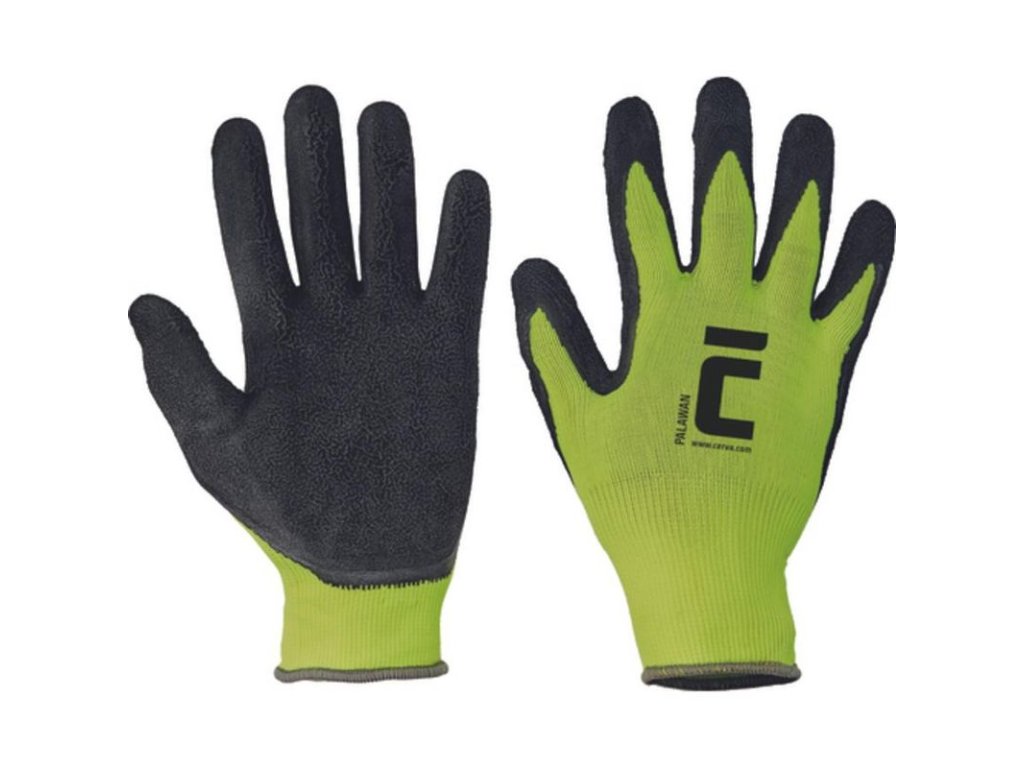 • bezšvové pletené rukavice zo syntetických priadzí • na dlani a prstoch povrstvené latexom